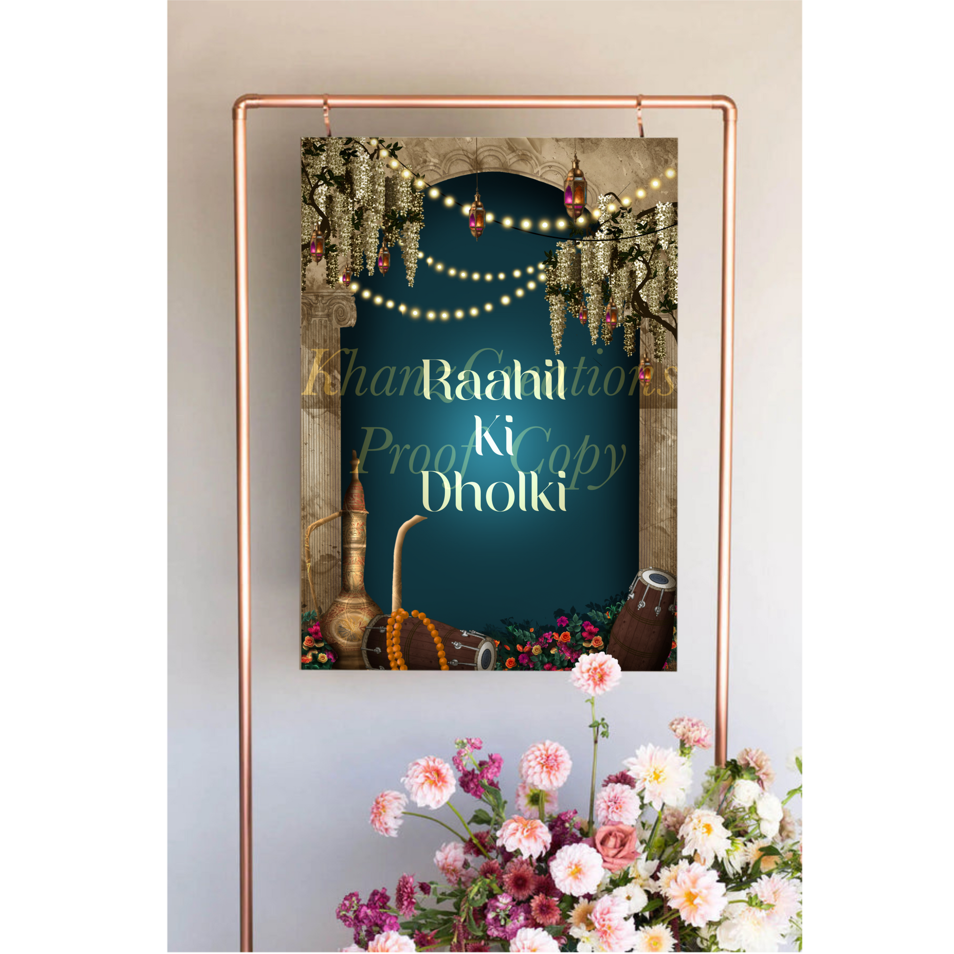 Picture a mehndi welcome board as a magical gateway to a fairytale celebration. It's like a charming storyteller, whispering tales of love and togetherness as you approach. Adorned with vibrant elegant designs, delicate flowers, and shimmering accents, it's a visual masterpiece that sings with romance and enchantment. This captivating board not only greets you but embraces you in the promise of a day filled with magic and unforgettable moments, where every detail whispers of a love story waiting to unfold.
