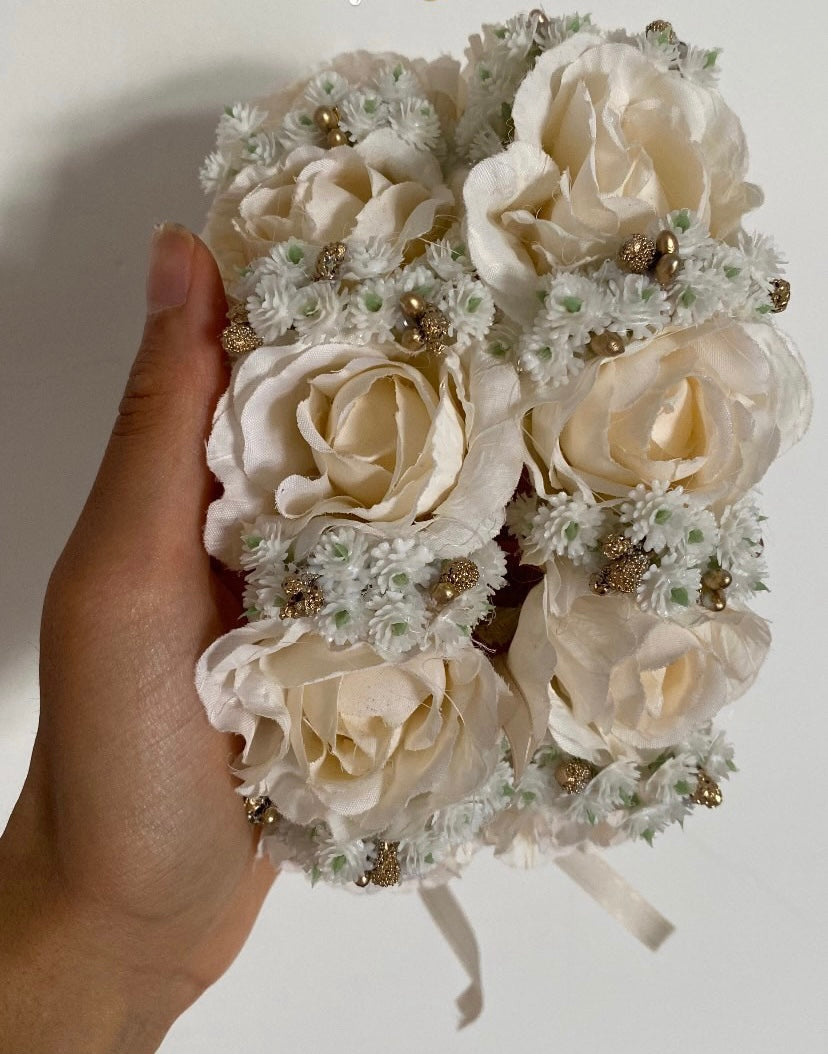 These bridal bracelets come as a pair and we would highly recommend these for our Brides you will love these they situated perfectly around the wrist for a full look, perfect for the smaller wrists too, no stress with fresh florals these look just as real!