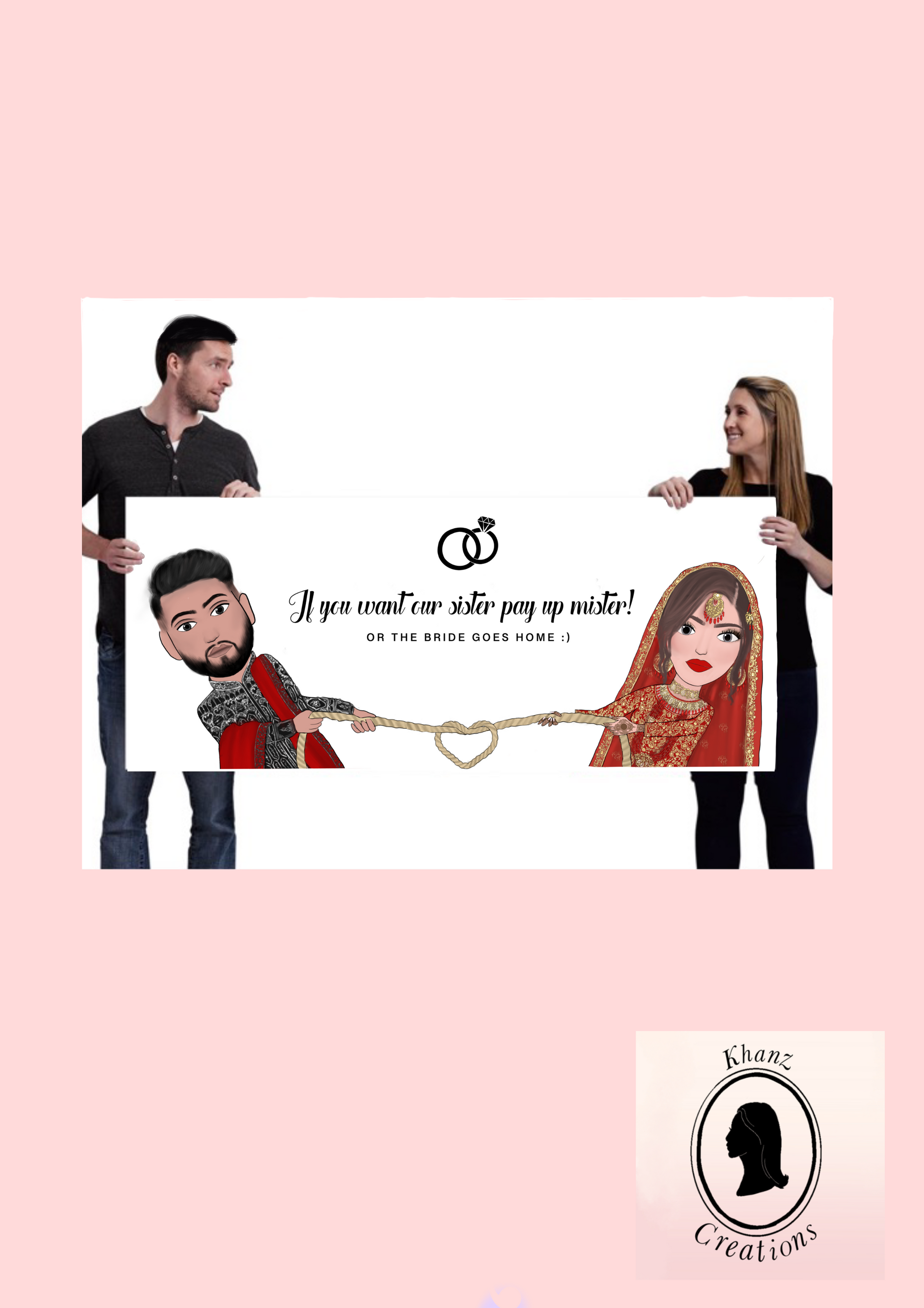 Now introducing baraat entrance banners to entice your guests at wedding events, make your baraat entrance more fun and playful with this banner of the bride and groom along with a message of your choice or you can just opt for the same one as displayed