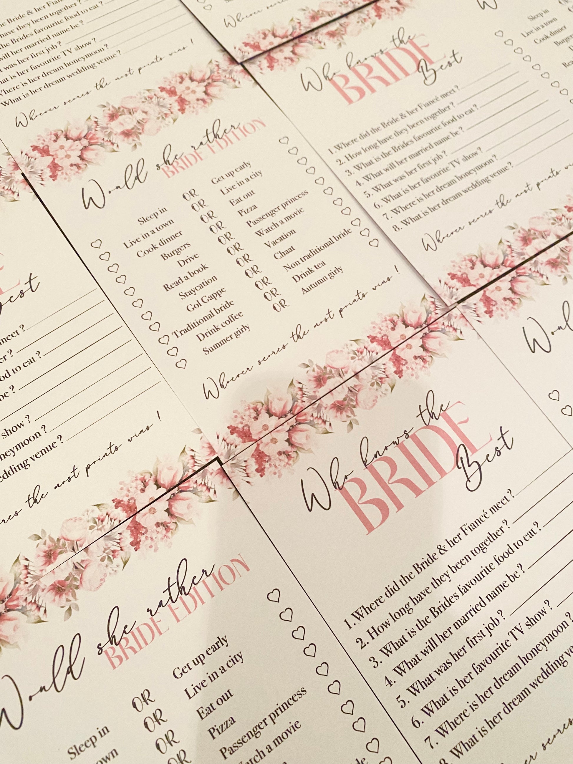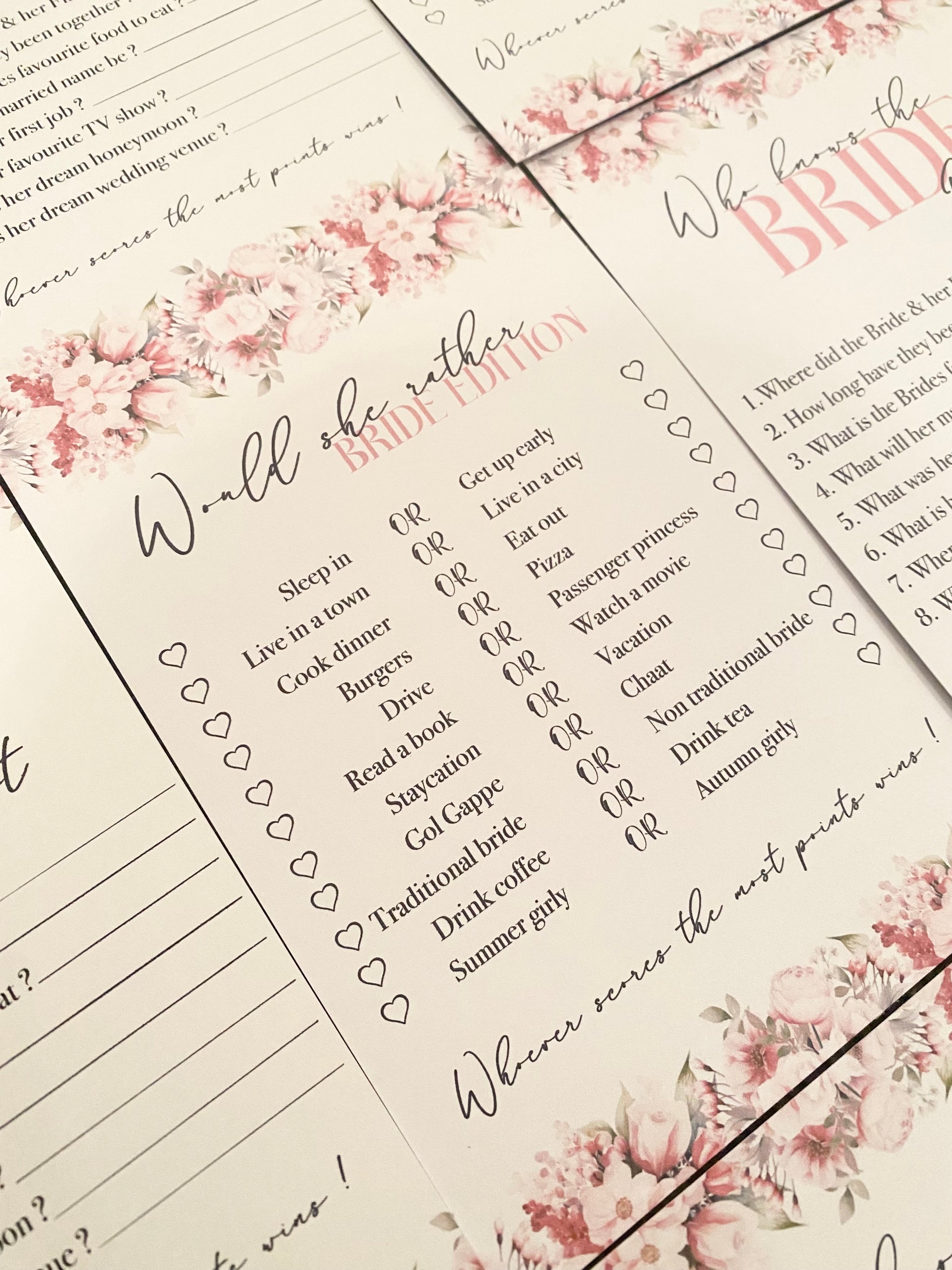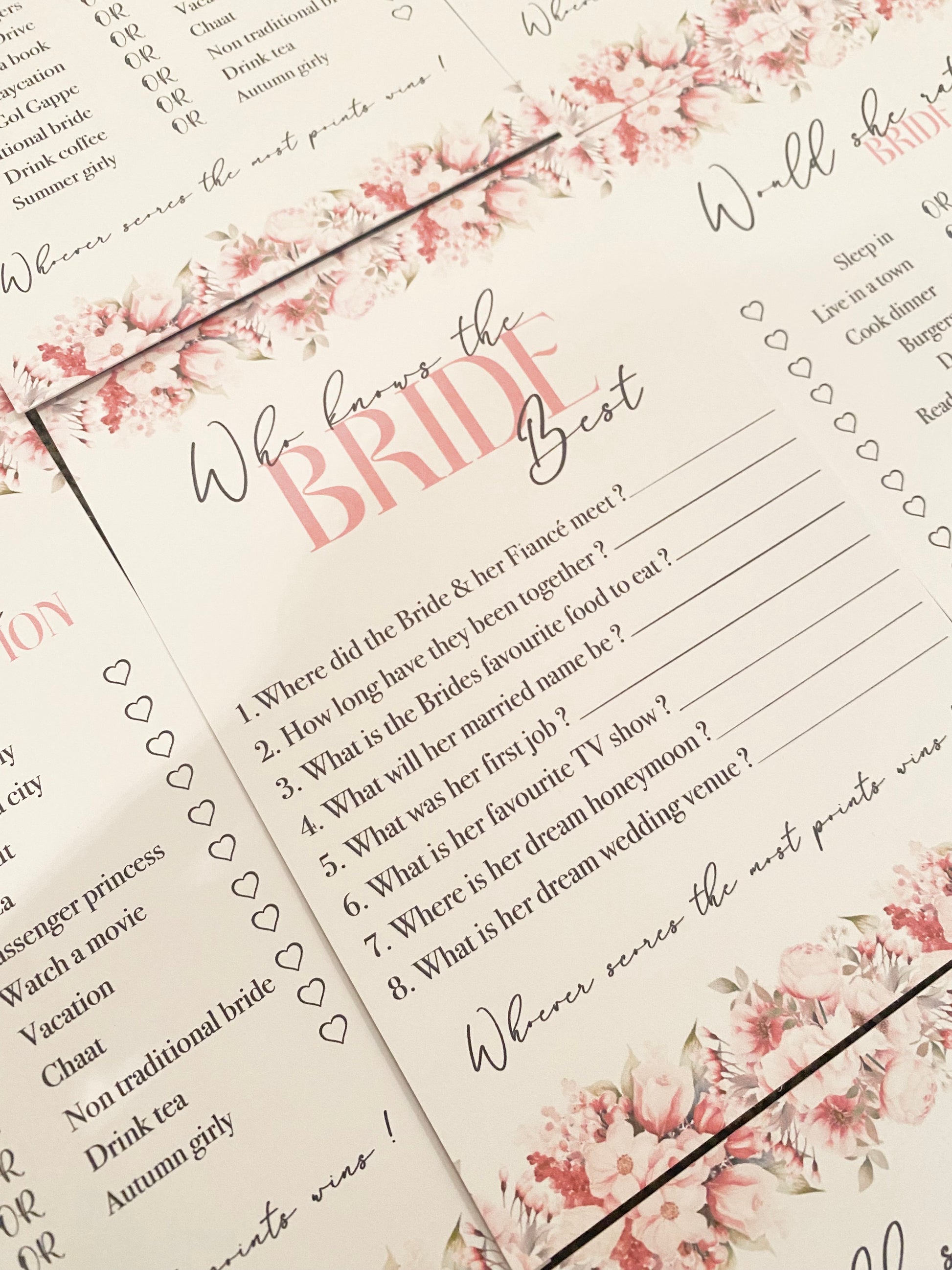 Fun and funky bridal shower game cards, more games will be added to this list. Swipe to get close ups of the cards with all the fun propositions, keep your girls entertained with these !