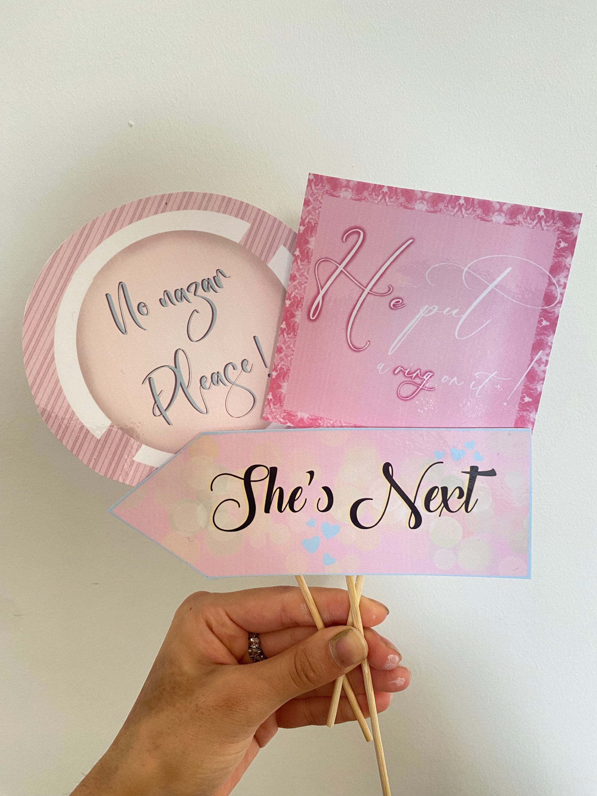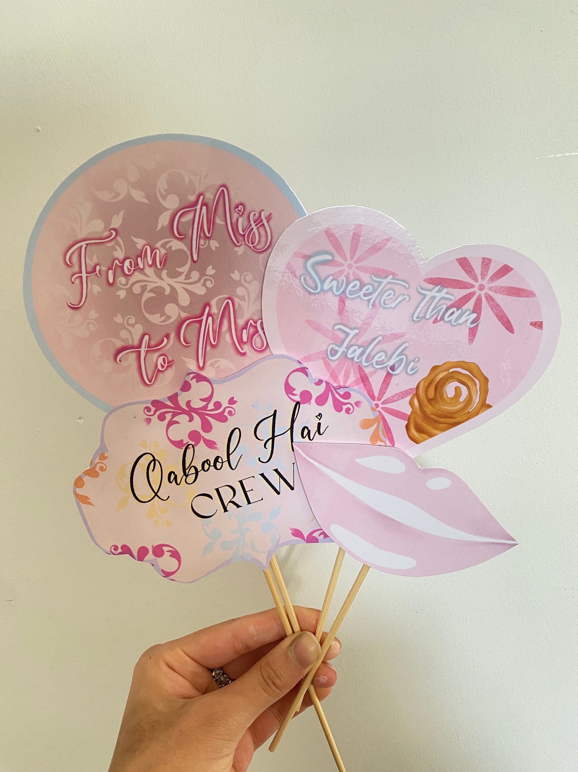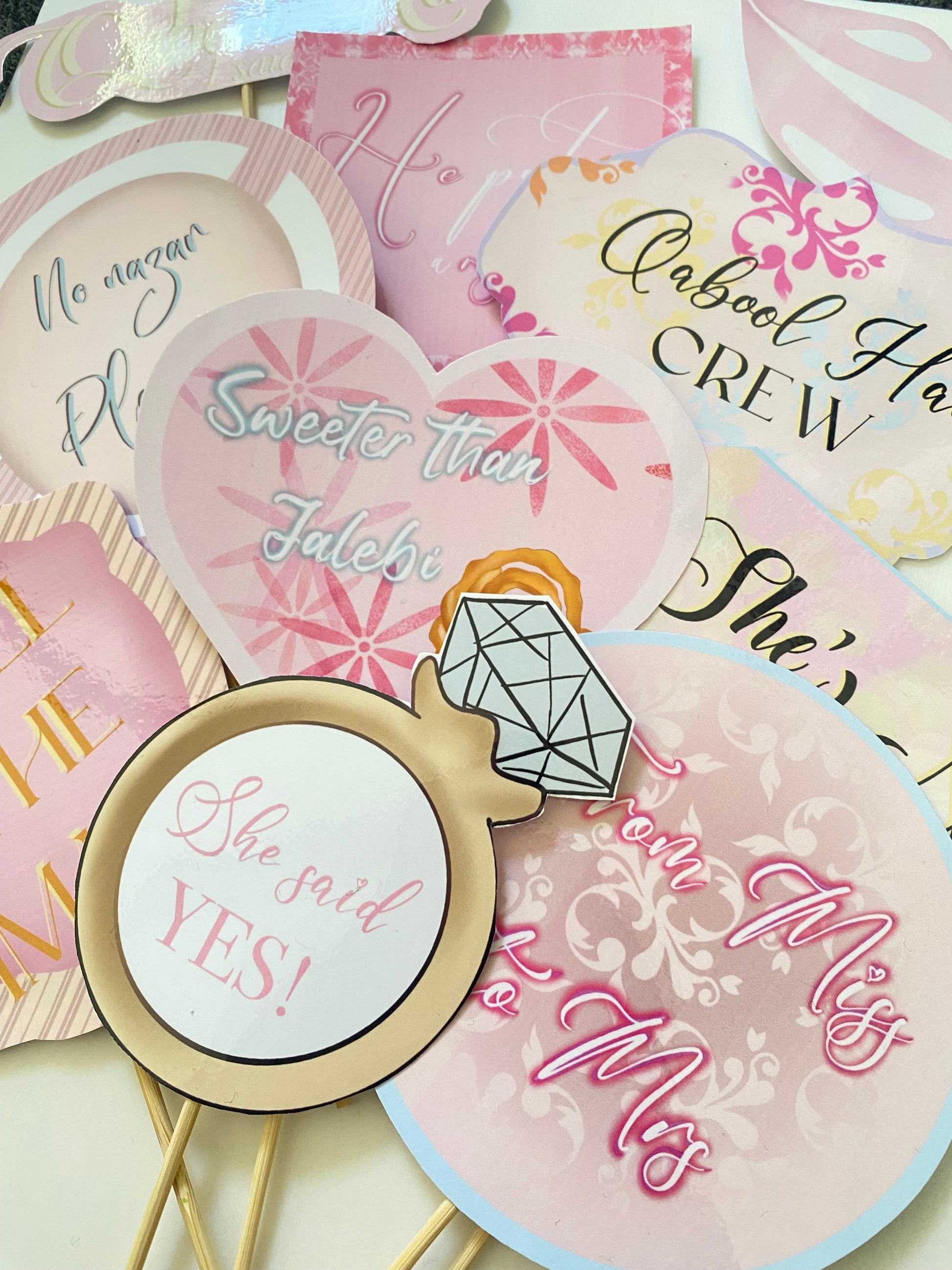 Now introducing props for bridal showers! With cute funky slogans you can’t go wrong, get your girls posing with these for those cute Polaroids/ Pics, these come in a pack of 10 & laminated for extra longevity