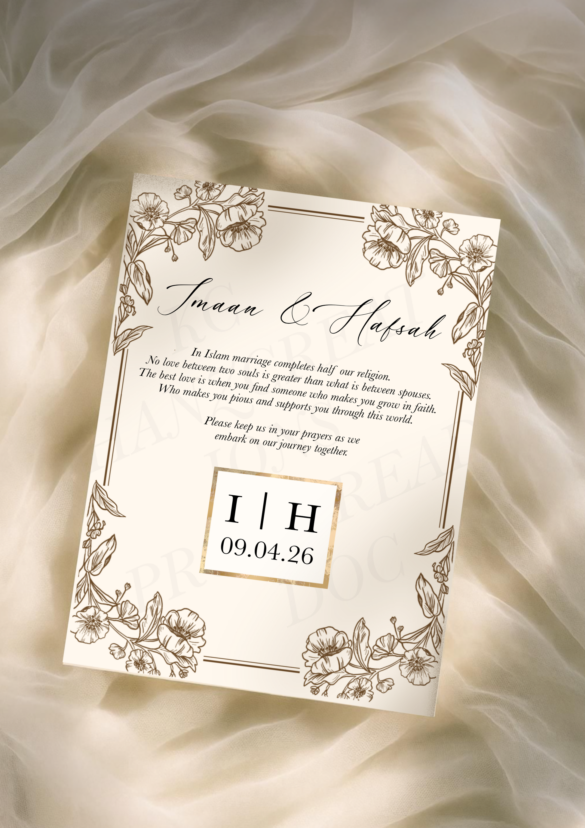 upon embarking the excitement of finding your perfect wedding treats, look upon these little favours that your guests will surley enjoy. Adorned with delicate floral detail around the border, a message to honour the couple to be wed, allow the whisper of duas travel around the room thatll be heard in the heavens above.