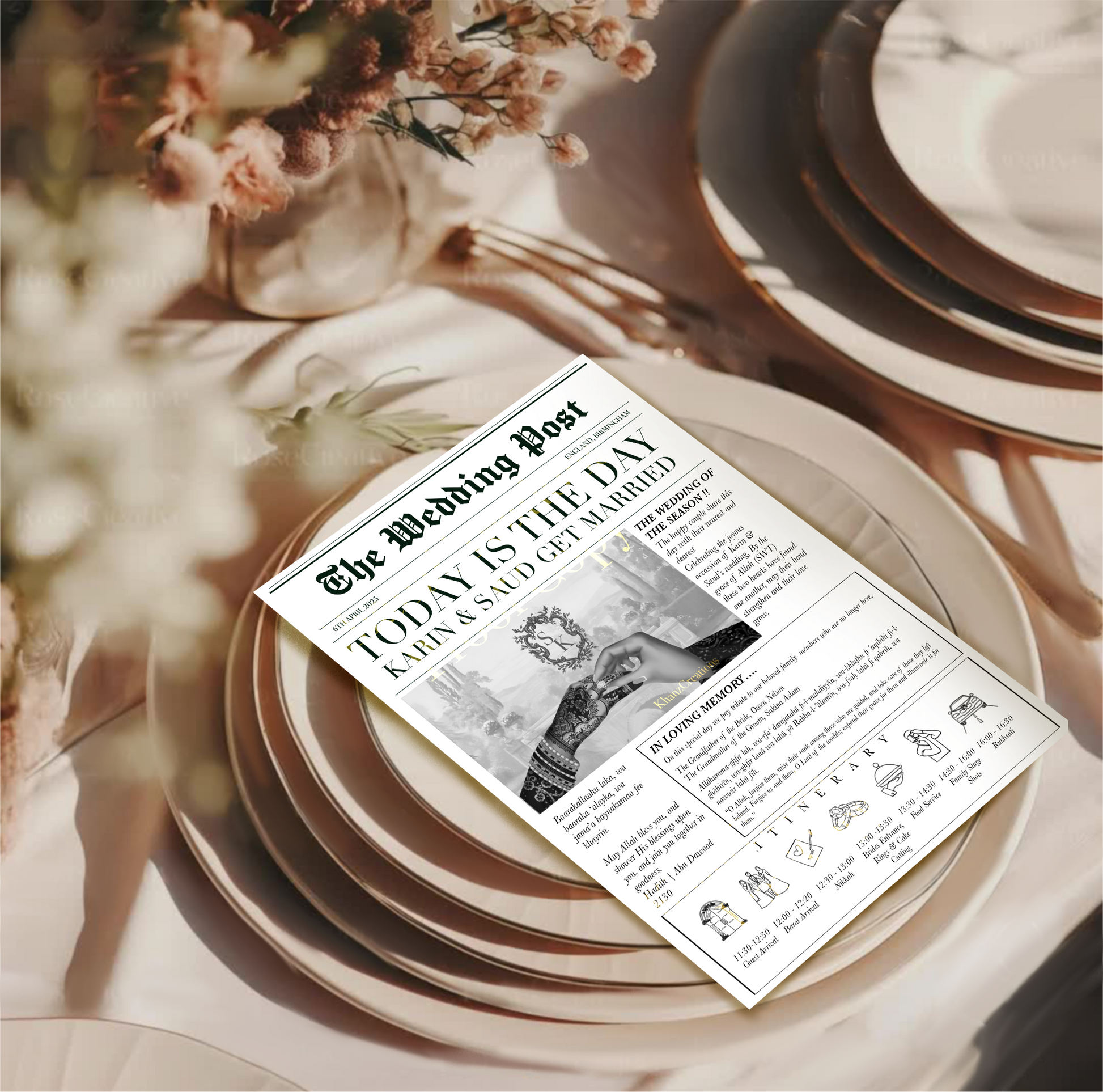 With our wedding newspapers your wedding becomes more than just a celebration; it becomes an experience, a fairytale brought to life through the language of flowers. Allow us to create a bespoke culinary journey that is as unique and unforgettable as your love story, leaving your guests enchanted and utterly captivated by the beauty and magic of your special day. Image is not true to size. See recommendations below
