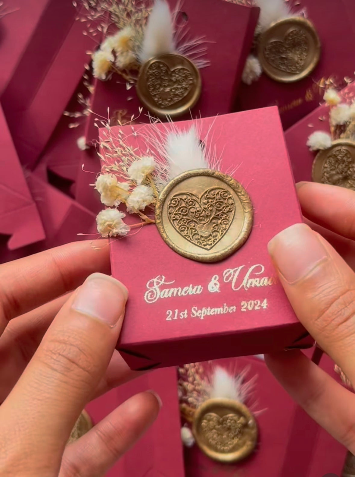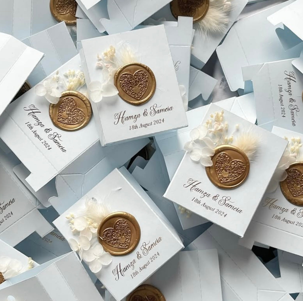 * Each favor bag is handmade and may have slight variations/imperfections in size, colour, dried flowers and foil application. These variations/imperfections are part of the unique charm of handmade items and are not considered defects. And are acceptable within industry standards.