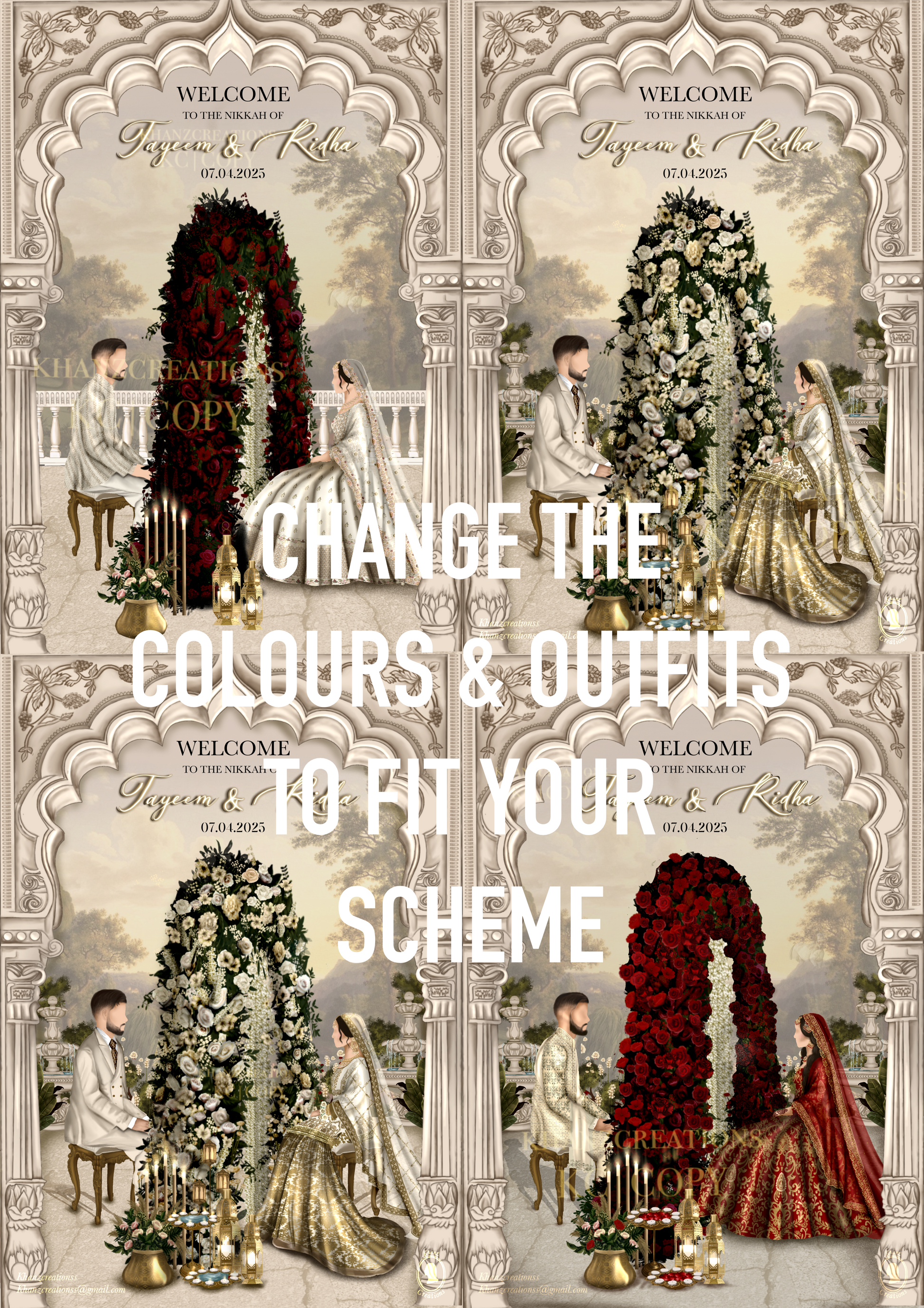 if you want the welcome board to resemble your own outfits please email us at khanzcreations.cs@gmail.com and we will create a LIKENESS.