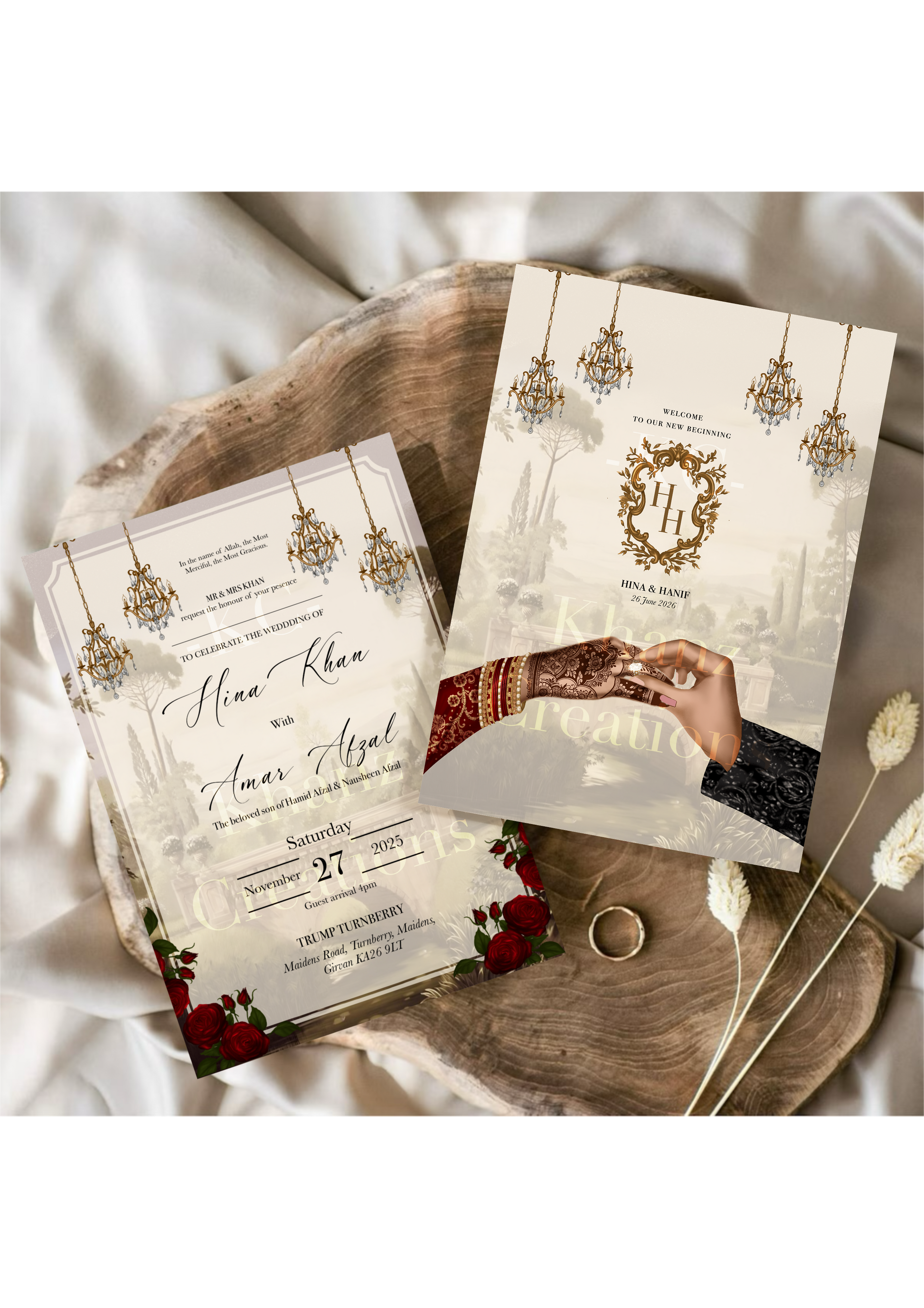Announce your vibrant union with these captivating invitations, where intricate artistry meets cultural richness. A bespoke illustration inspired by South Asian motifs graces the front, whispering tales of your special day. Printed on luxurious silk paper, each invitation is a keepsake, promising an event as magical as your dreams. A proof will be provided, but the ultimate responsibility for accuracy lies with you.