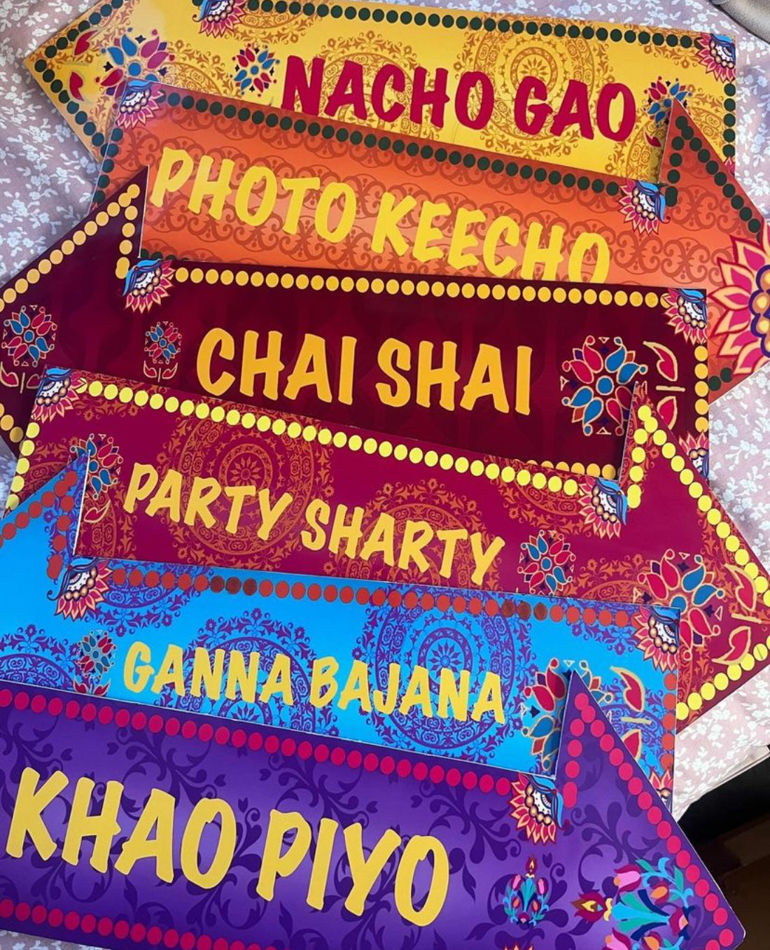 A funky and fun way to entice your guests at your event, wether your going to have them on a pole or even if your going to place them on your table set ups then this is the perfect place to get your arrow signs for your DIY projects, make your mehndi/dholki events cute! Fun! And funky!