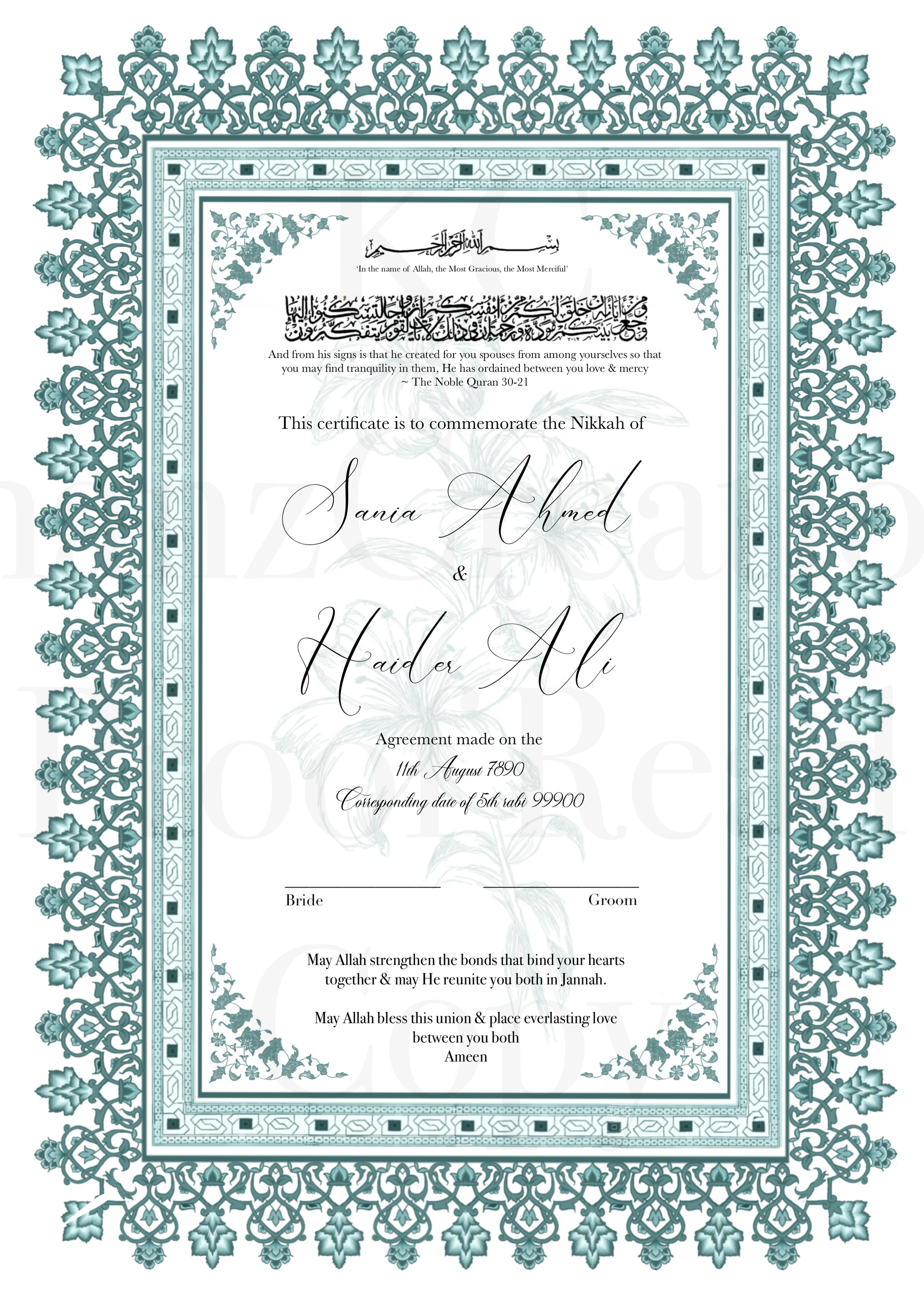 A nikkah certificate, is a sacred testament to the beautiful union of two souls. Picture if you will, an exquisite parchment, bearing the delicate calligraphy and pattern that narrates the promise of a lifetime. Each certificate, a unique masterpiece, a tangible memento of the day when two becomes one.
