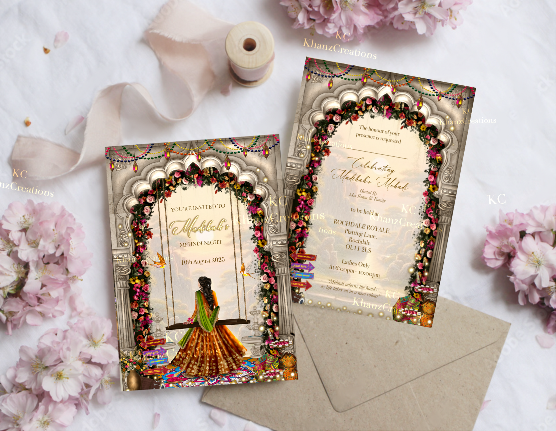 if your eyes have set upon this mehndi invitation, then we just know the colours speak to everything a mehndi should be, bright and vibrant, telling by its given name, it is nothing short of beauty.